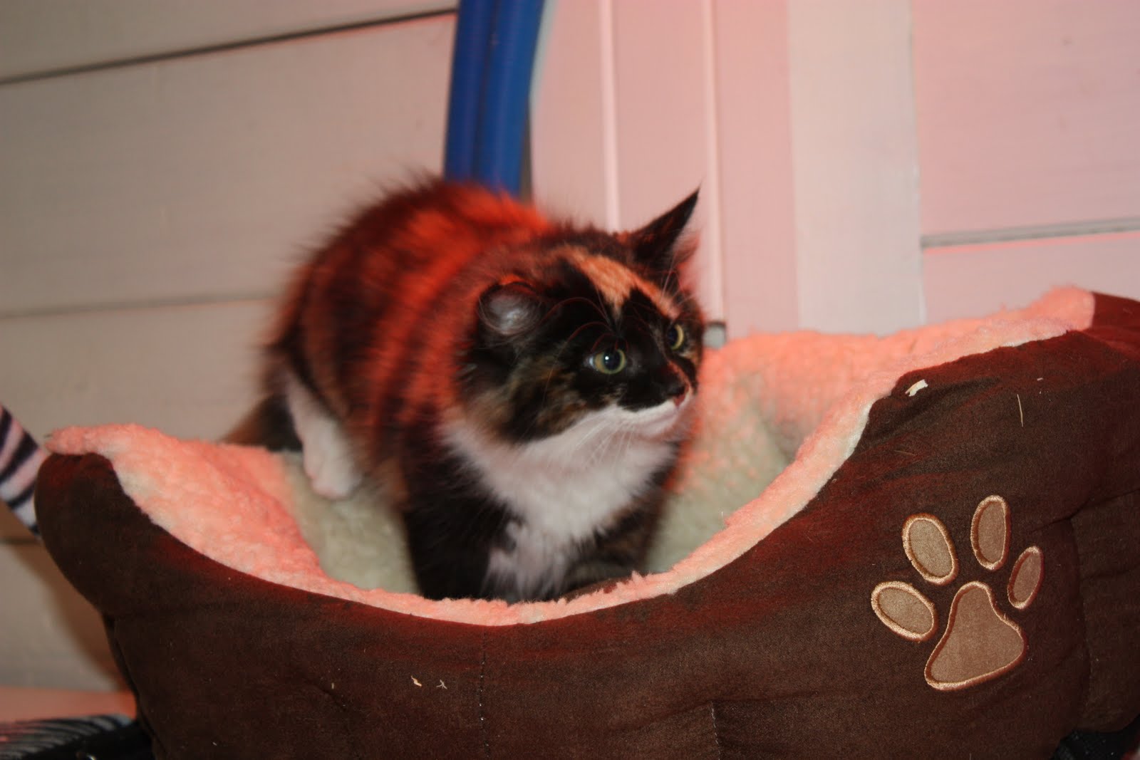 Väl hemma idag så har hon redan lärt sig hur vattenkoppen fungerar men höjden är visst inte så bra än ;-)
