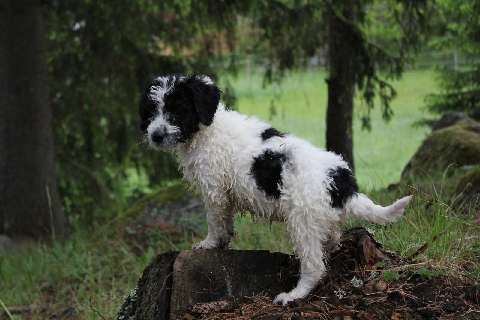 Blogg Bombivalpar 8 veckor redan! 27 maj, 2011 / Om man springer i högt gräs strax efter det regnat så… blir man så här blöt! ;-)Syrran Vitamin efter lek i gräset!