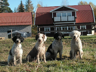 Här har jag äntligen lyckats få alla fyra att sitta still tillräckligt länge och samtidigt. Det var inte så bara idag att ta kort då Aqua hade helt andra planer så fort jag bara kom i närheten av att trycka av så var hon ur bild. I bakgrunden ser ni hur fint garagetaket blev till slut! :-))