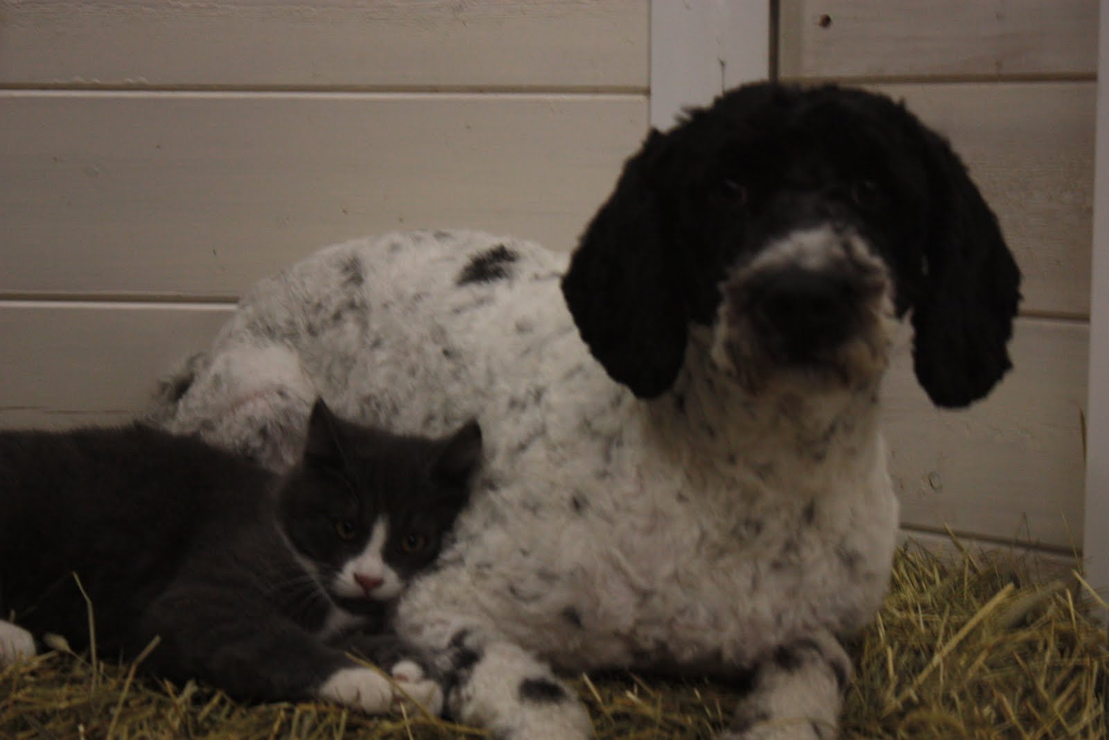Herr Morris tyckte att nyklippta Vilja var varm och mysig att gosa med! Vilja var inte lika säker på att det verkligen va mysigt! ;-)