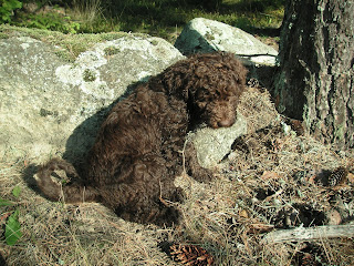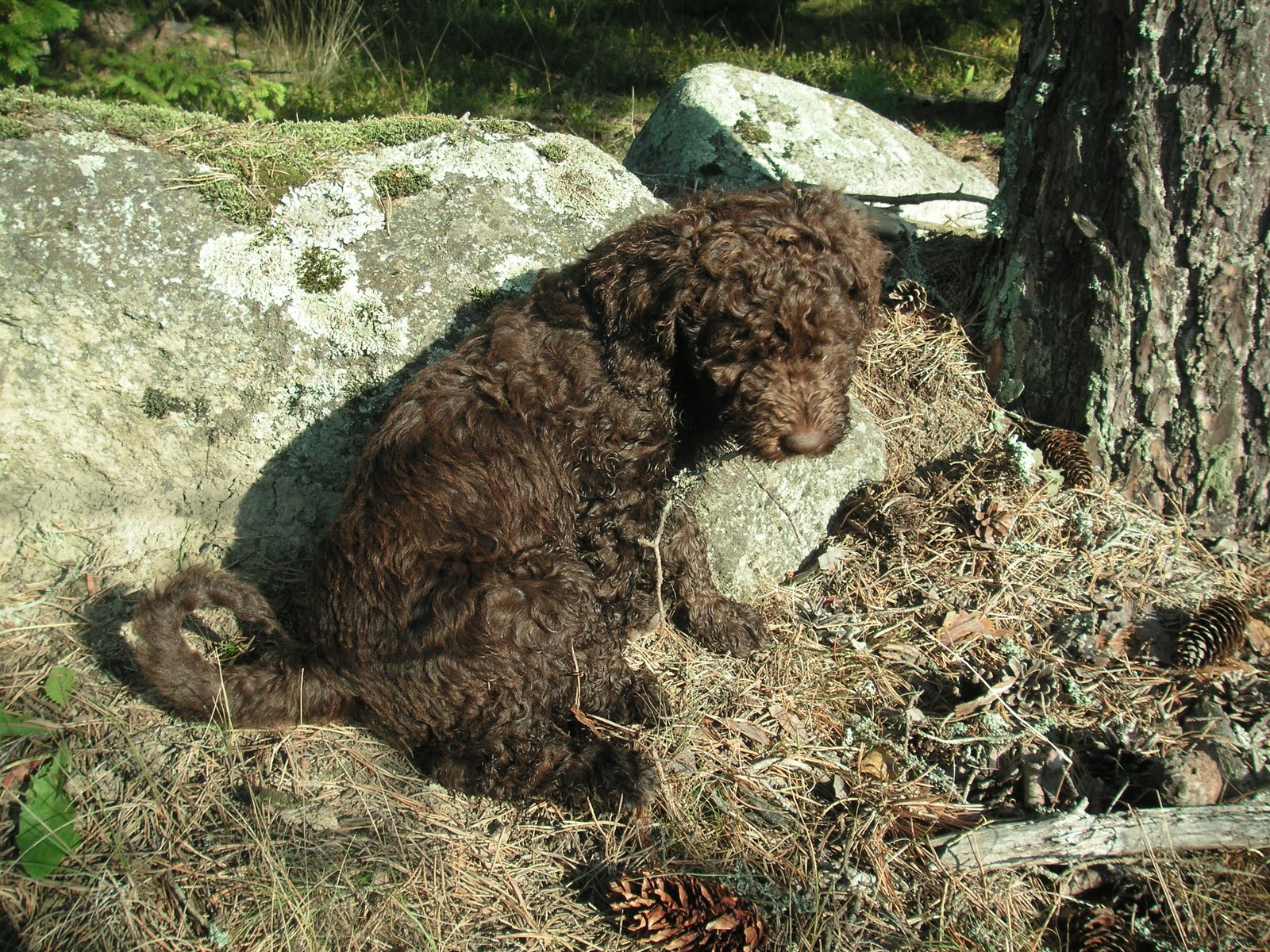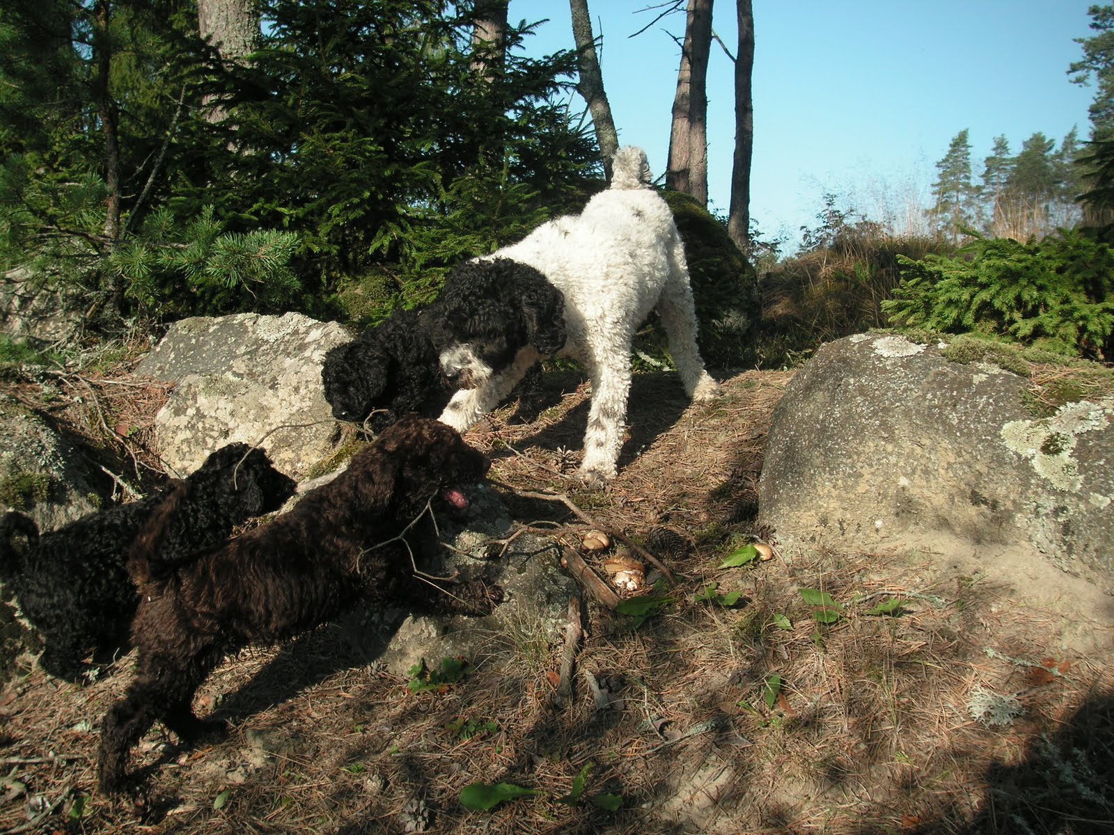 Blogg Morgonpromenaden 10 september, 2010 / Så här ser det ut varje morgon på vägen till “stora skogen”! Vilja i full fart med att leka med valparnaVolbeat vilar och solar mot en sten med pinne i munnen Allt ska undersökas Millencolin sitter still för en sekund Här poserar Trivium