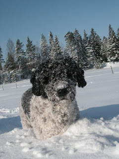 Pelle är ju en riktig spjuver som alla ni som träffat honom känner till. Jag tror även att just det är ett stort kännetecken för rasen i sin helhet, att dom har stora och starka personligheter. I somras var Pelle och jag i Kramfors och tävlade lydnad och då var det värmerekord med 32 grader i skuggan och stiltje och inte störde det honom alls. Igår var det -14,5 grader, snö och en ilande nordanvind och inte störde vädret honom i alla fall. Ja vilken hund!