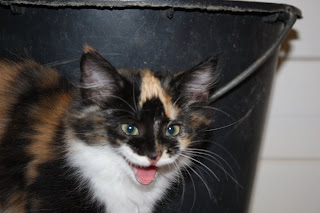 Nicole har fotat Tingeling idag och det är inte så lätt att få med henne på bild inte. Hon springer, hoppar och jabbar med tassarna så mycket hon orkar. På fredag kommer herr Morris att flytta hem och hoppas att han är en tuffing som Tingeling, annars kommer han få det jobbigt! ;-)
