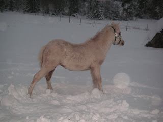 Ja nu har vintern kommit till Grillby! Socker, Blondie, Lillan, Busan eller vad hon nu ska heta var lika lycklig som hundarna över detta vita kalla som täcker allt. Hon klev bara ut ur stallet och vek ihop benen direkt utanför dörren, rätt ner i den mysiga snön.